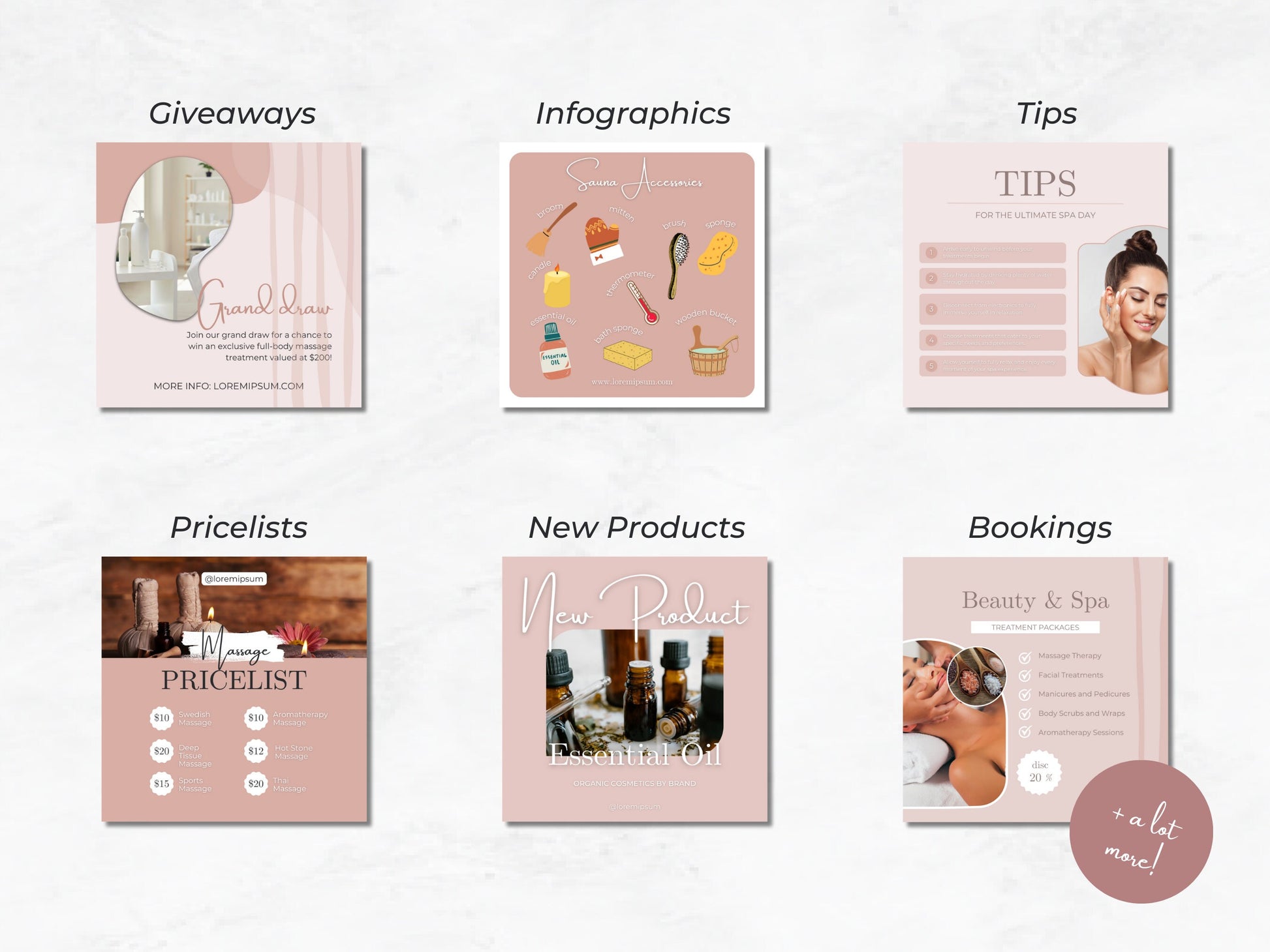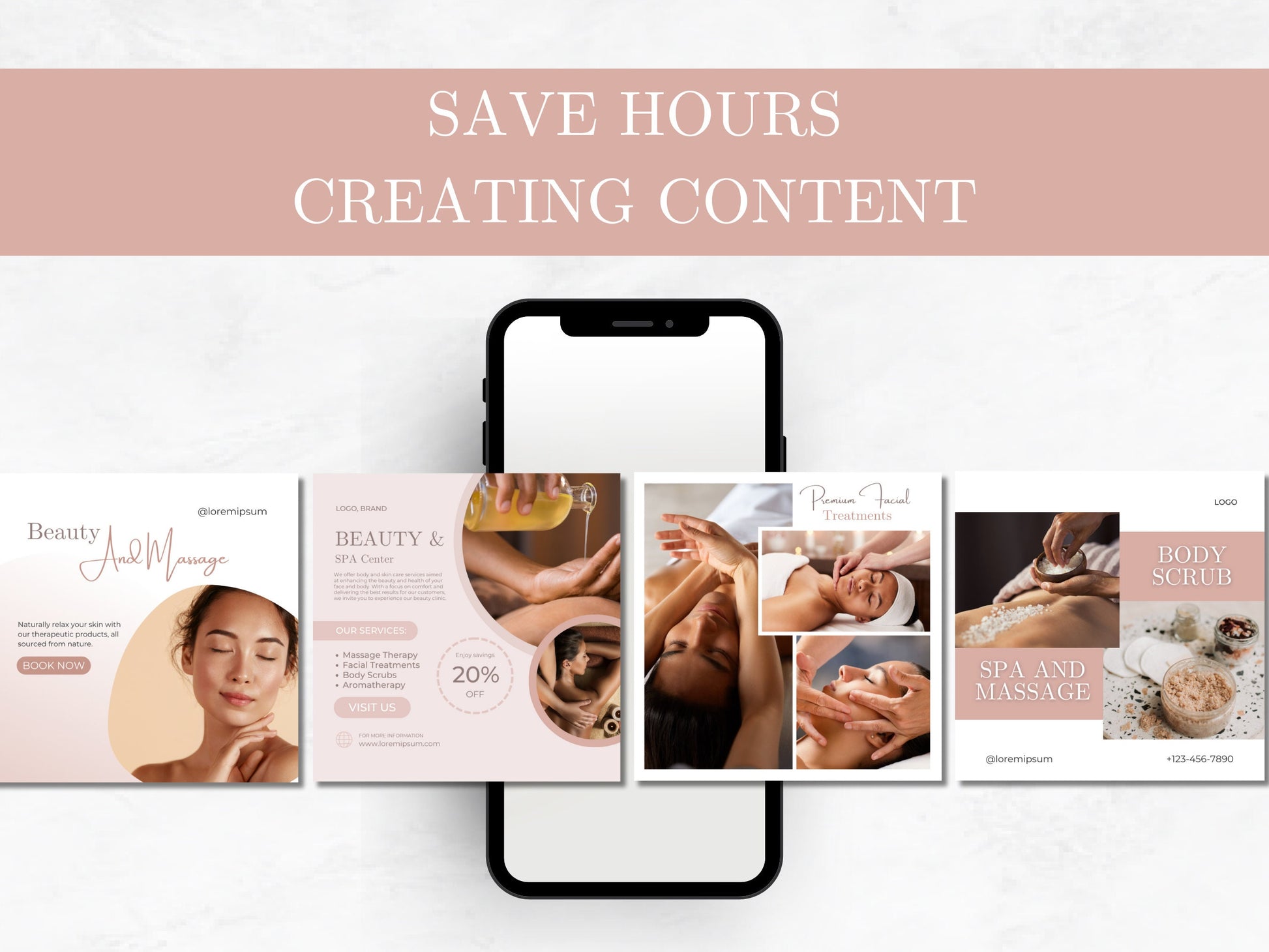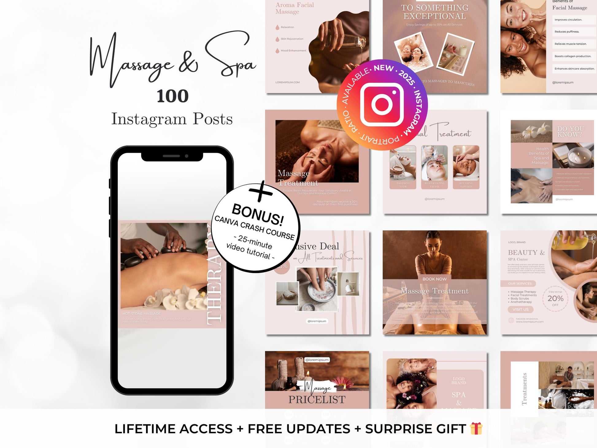 100 Massage & Spa Instagram Posts Canva Templates – Massage Therapist, Spa Canva Templates, Therapist Instagram Posts